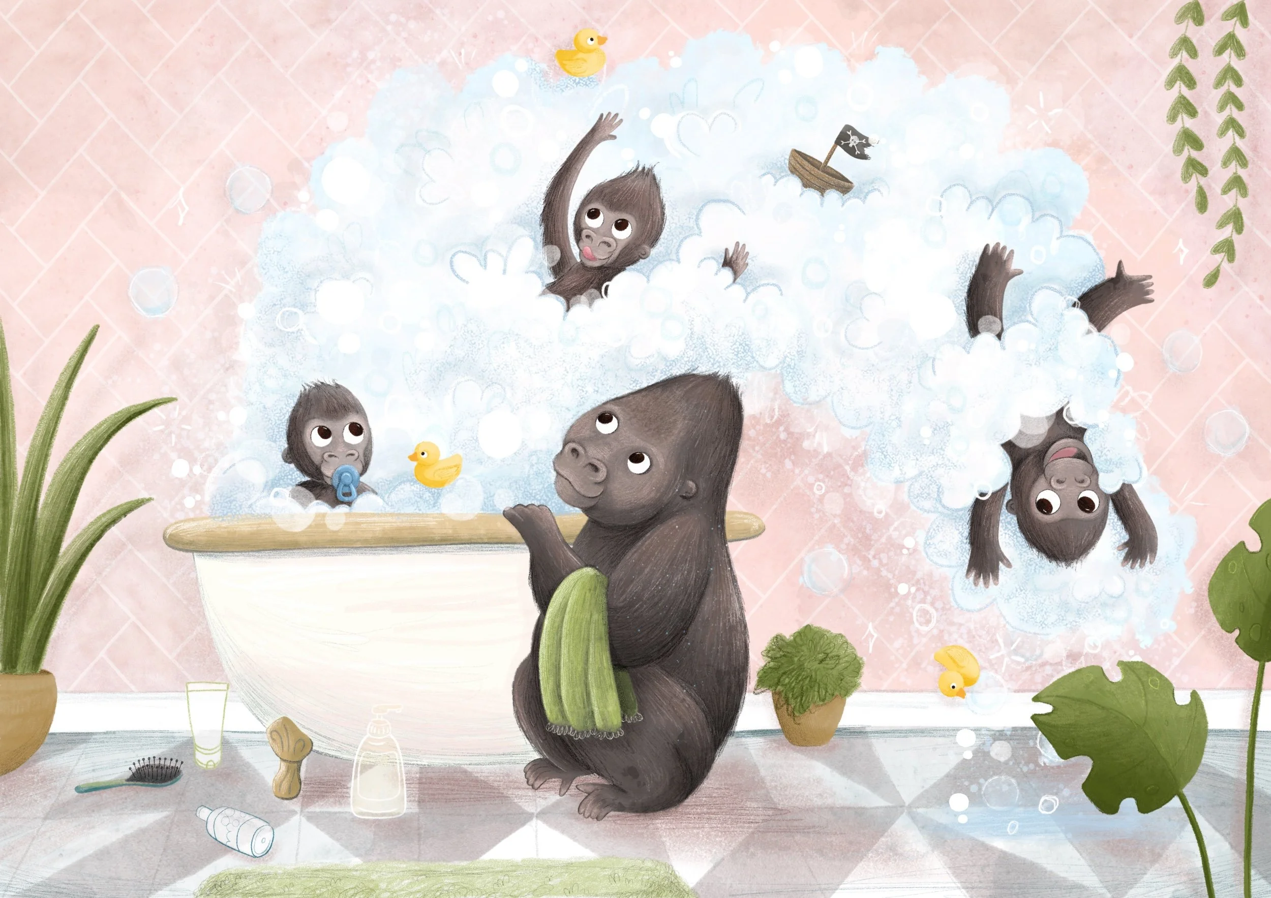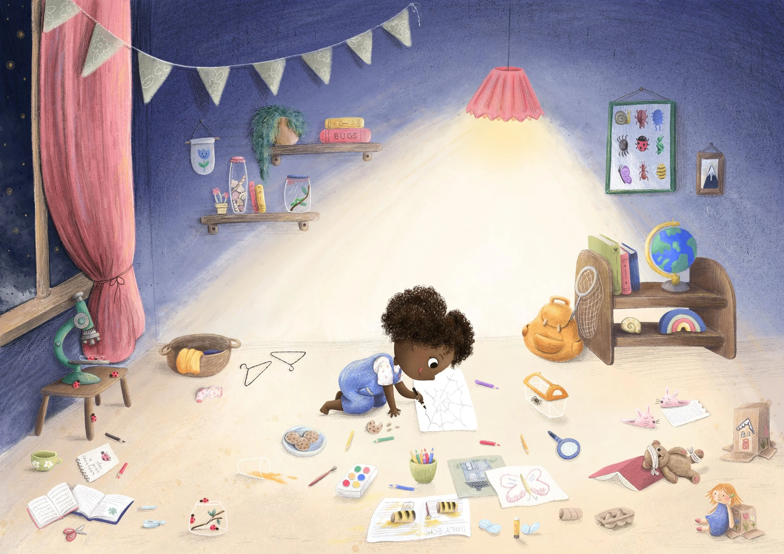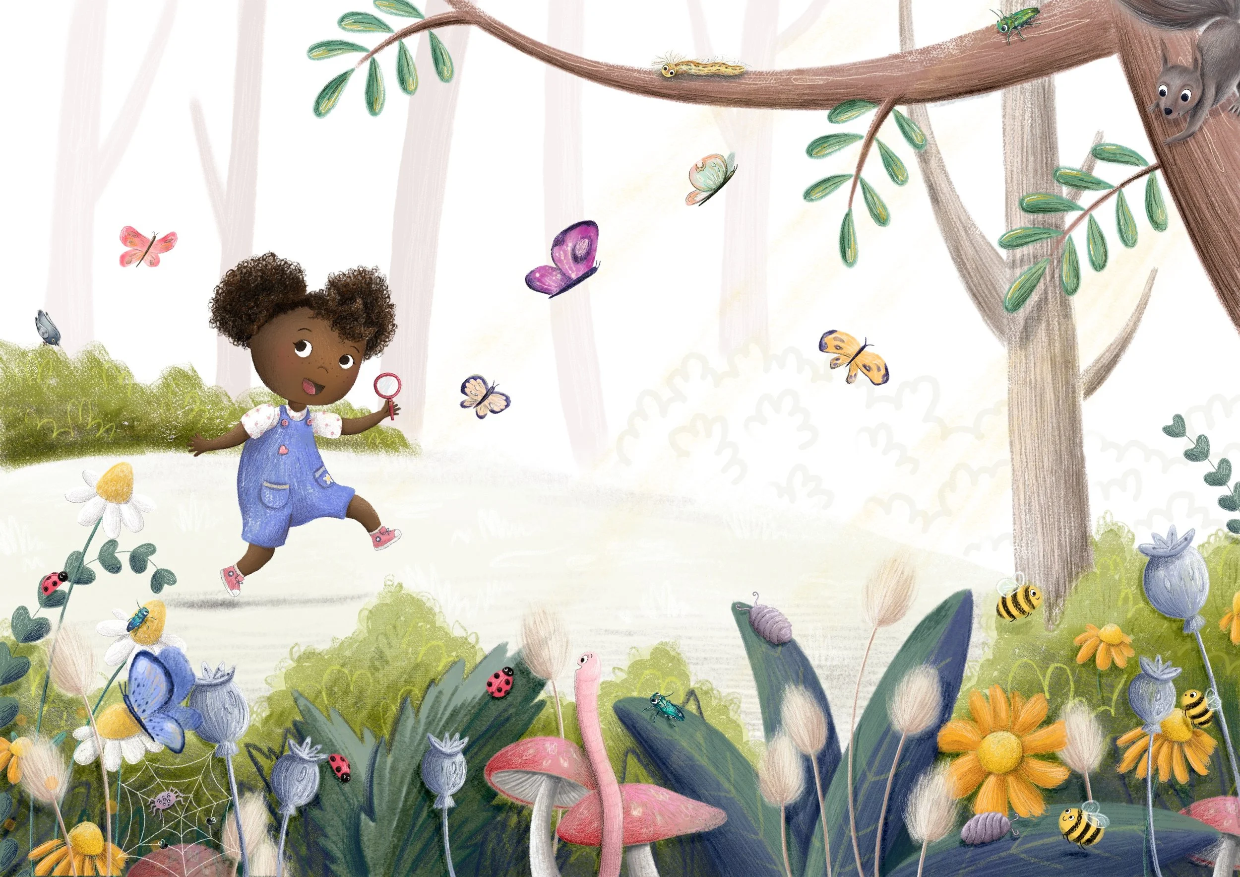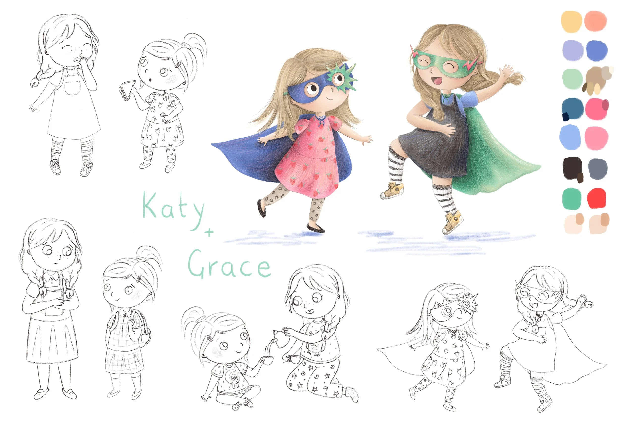 Shortly after completing a First class degree in Fine Art at Sheffield Hallam University, I began working as a high school Art Teacher. Fast forward a few years, and after bringing my own three, fun loving (and at times crazy) children into the world I realised my passion lay in children’s books and so here I am, beginning my career in illustration. You can find me in my home studio with my cat, Pearl, snug on my shoulder! (Someone has to oversee my work, right?!)